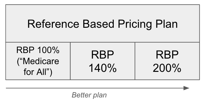 Instead of inventing a network, there is another fork we could have chosen: that of "reference pricing". In a Reference Based Pricing (RBP) plan, members don't have a network. Instead, they have a service-specific allowed amount for any type of eligible service.